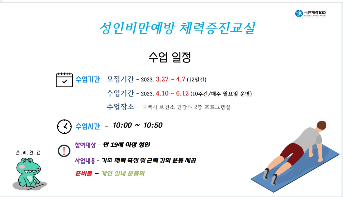 태백체력인증센터와 함께하는 성인비만예방 체력증진교실 회원모집